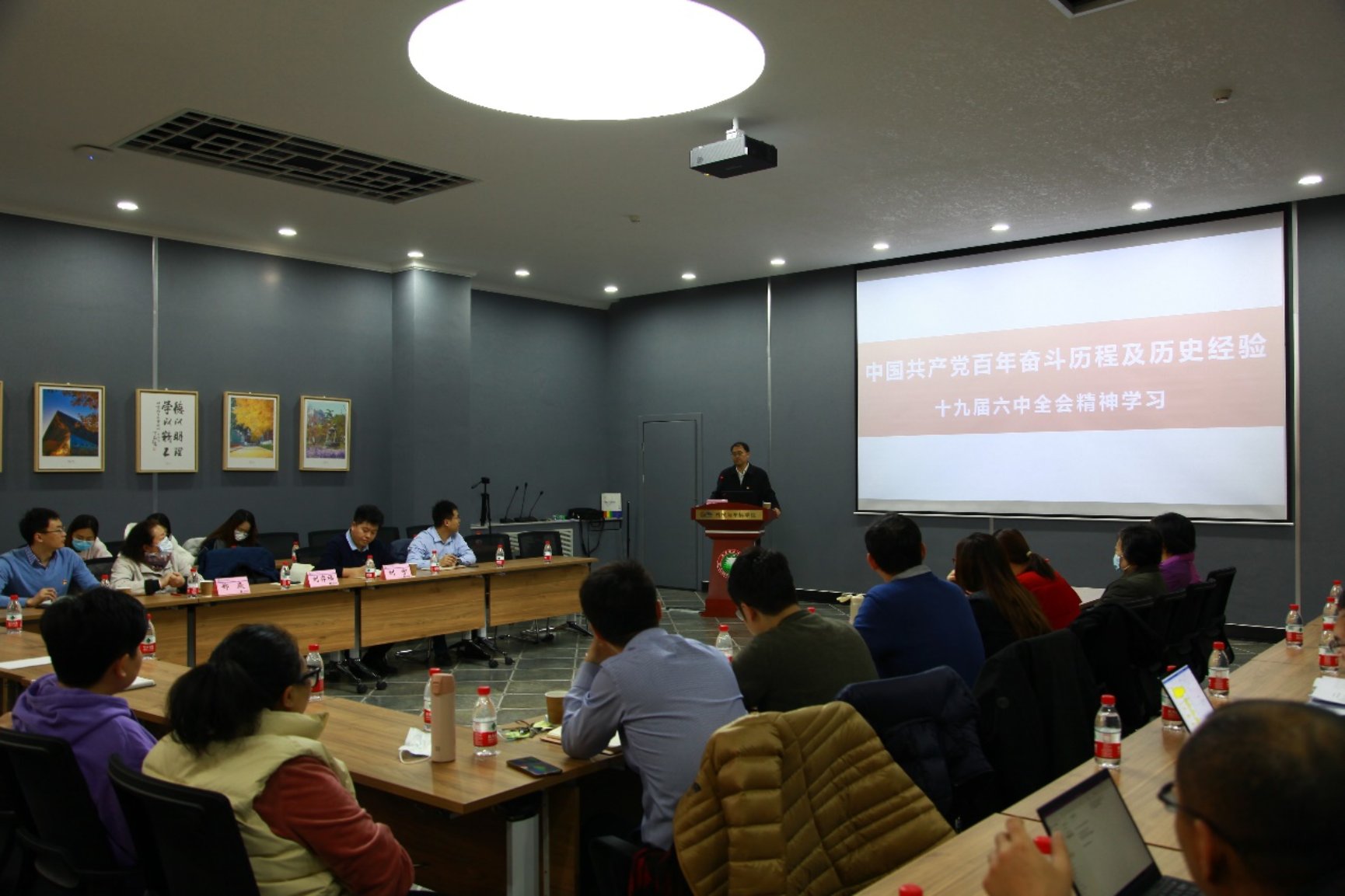 学院党委于11月25日召开理论学习中心组学习会议,集中学习党的十九届六中全会精神。会议指出,学习宣传贯彻党的十九届六中全会精神是学院当前和今后一个时期的重大政治任务,要全面系统学习领会全会精神的丰富内涵与核心要义,牢牢把握正确方向导向,切实把全院师生员工思想和行动统一到党中央决策部署上来,不折不扣抓好贯彻落实。全体师生要在学校党委的坚强领导下,在学校第十五次党代会精神的指引下,上下同心、勇于开拓、奋力拼搏,为把学院早日建设成为中国特色世界一流机械学院而努力奋斗!